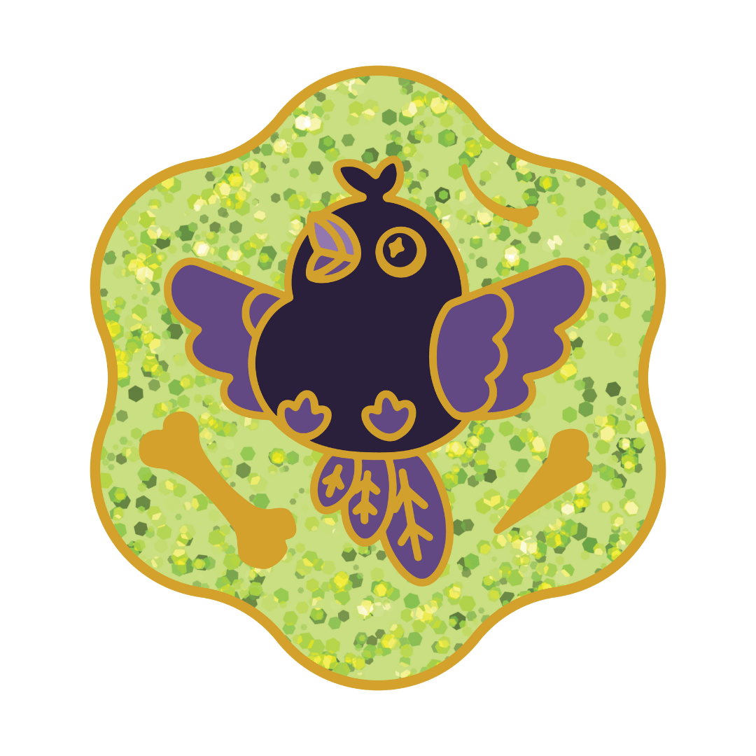 • Enamel Pin featuring one of the heroes of Bria's Mythical Menagerie - Poe the Necro Raven! 2" hard enamel pin with rubber stopper